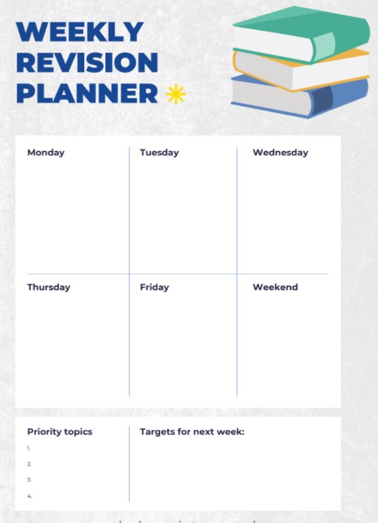 Now you know WHEN you’ll be focusing on each subject, decide what you might be doing in this time. Some of it will be for homework, some for making notes and some for reviewing material – it helps if you know in advance as you’re less likely to be distracted.