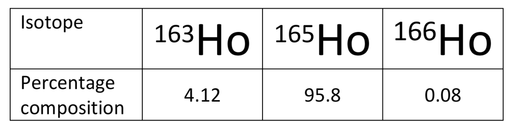 4. What is the relative atomic mass of a sample of Holmium (to 2 decimal places) given the information about isotopic composition shown in the table?